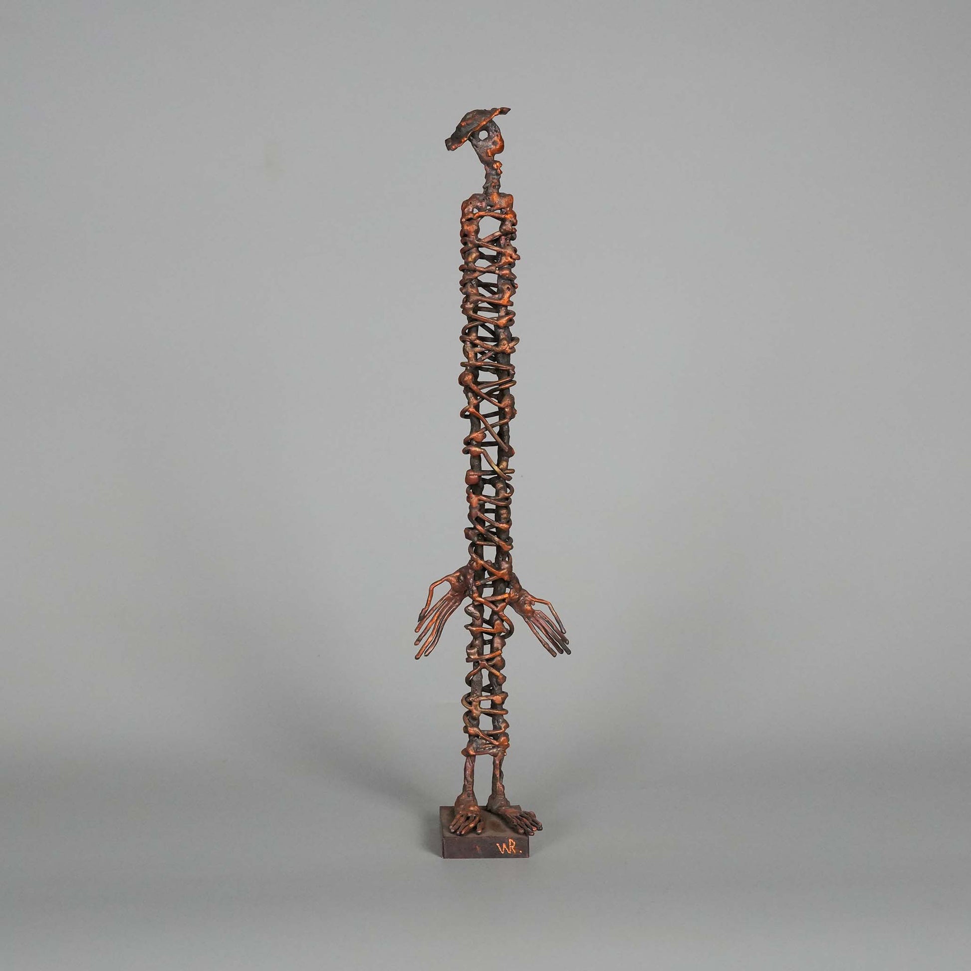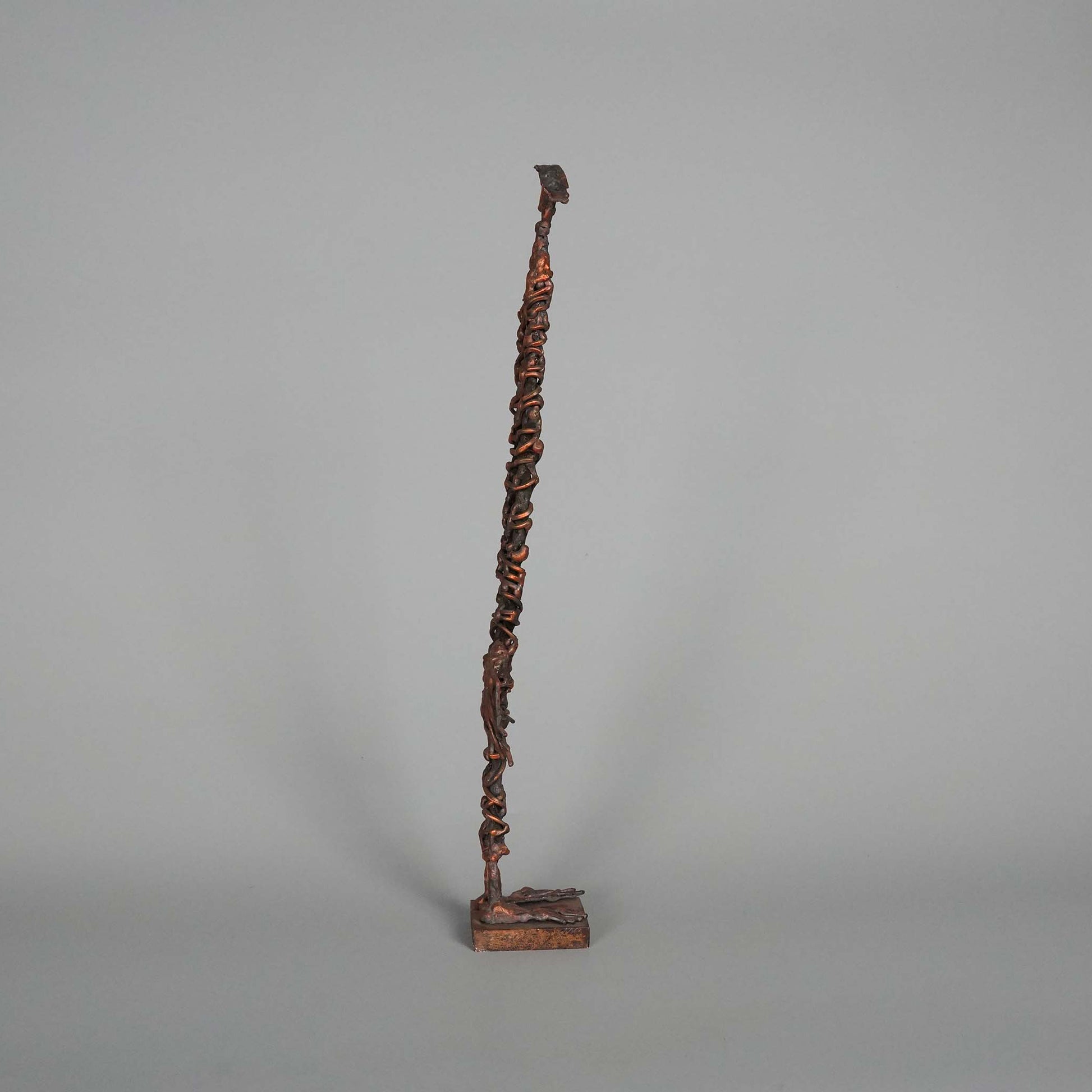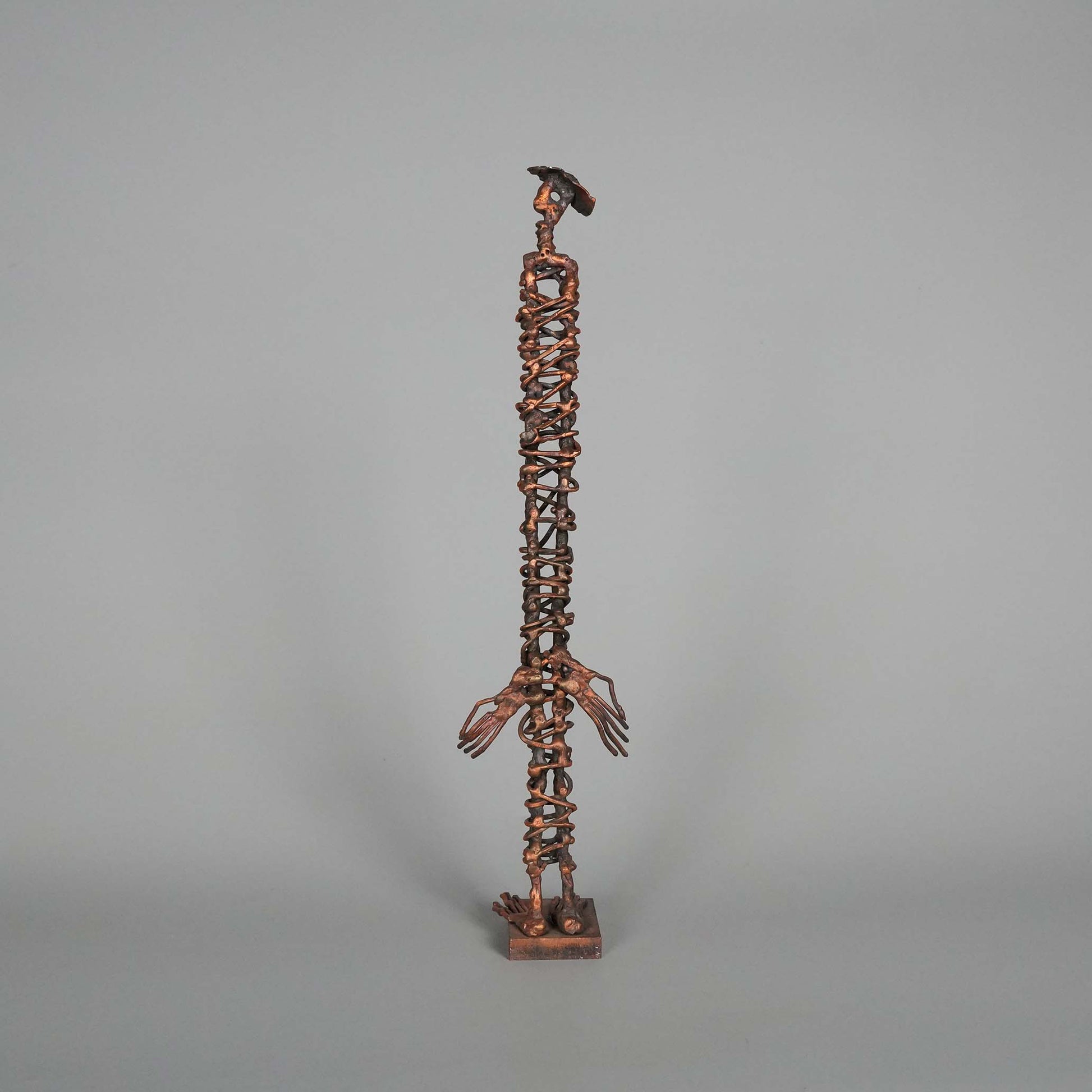 "Auf den ersten Blick können wir uns nicht sicher sein: Wann wurden diese Plastiken geschaffen, und woher stammen sie? Hat man die schmalen Figuren nicht in ähnlicher Weise schon einmal in einer alten Höhlenmalerei gesehen? Sie verkörpern grundlegende Muster von Aufstieg, Bewegung und Gleichgewicht. Bei näherer Betrachtung dann eine seltsame Ahnung: Ist das etwa Kunst aus miteinander verschmolzenen Kupferdrähten? Wenn es so wäre, dann verschwindet die historische Referenz - denn so etwas hat man noch nie gesehen.